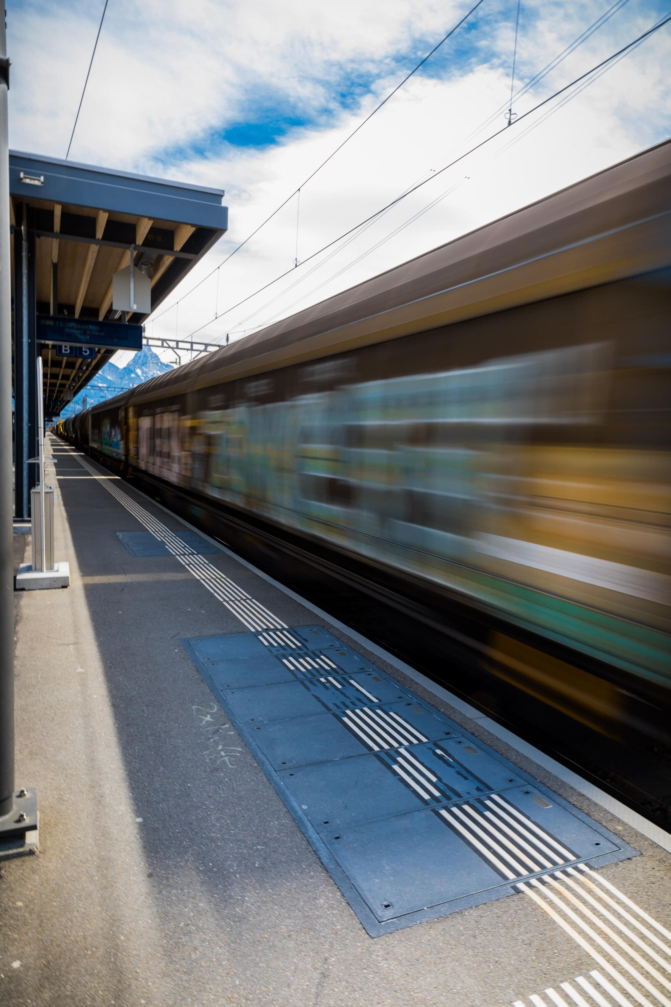 Güterzug im Bahnhof Goldau